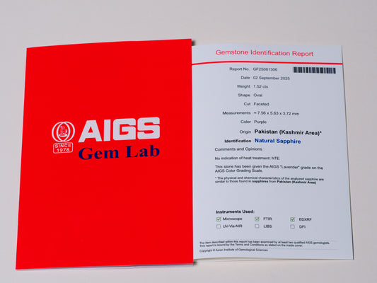 Certified No heat 1.52ct Kashmir Purple Sapphire