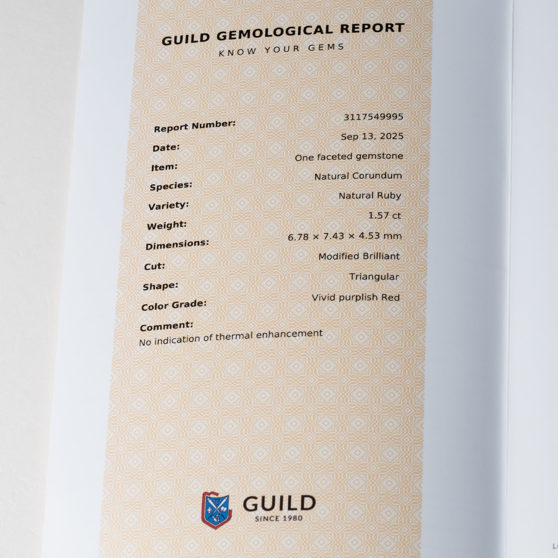 This exquisite 1.57ct Kashmir ruby is certified no heat, preserving its natural red colour renowned for exceptional depth and brilliance. Originating from the rare and storied Kashmir mines, this untreated gemstone combines outstanding clarity with intense saturation, making it a distinguished choice for collectors and connoisseurs seeking genuine rarity and superior quality.