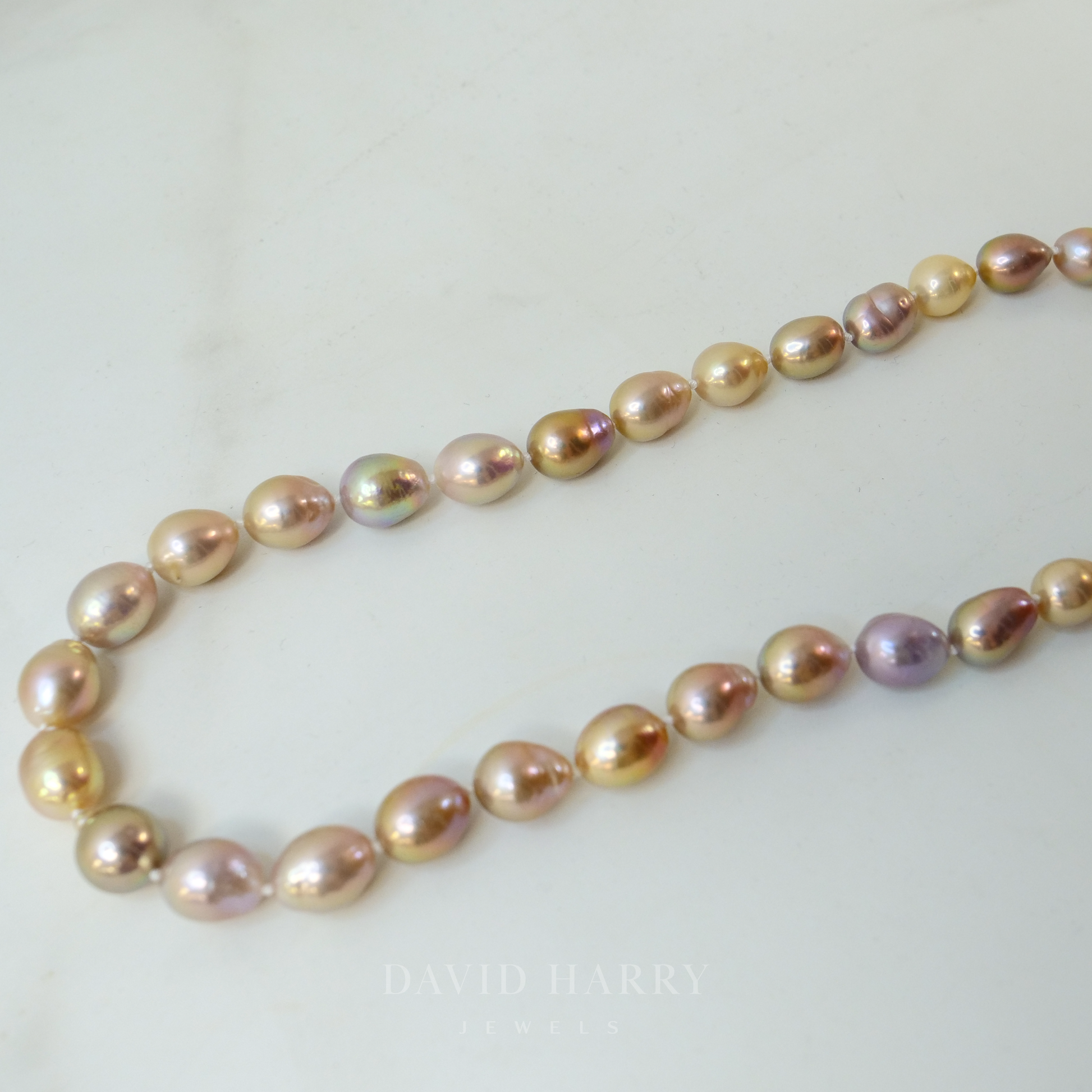 Elevate your collection with the Metallic Lightbulb Pearl Strand, featuring lustrous pearls renowned for their exceptional quality and subtle metallic sheen. This strand offers a sophisticated blend of classic elegance and modern refinement, perfect for enhancing both formal and contemporary ensembles. Crafted to highlight the natural beauty and durability of Hanadama pearls, it promises lasting brilliance and a distinguished look. Ideal for connoisseurs seeking a unique yet timeless accessory.